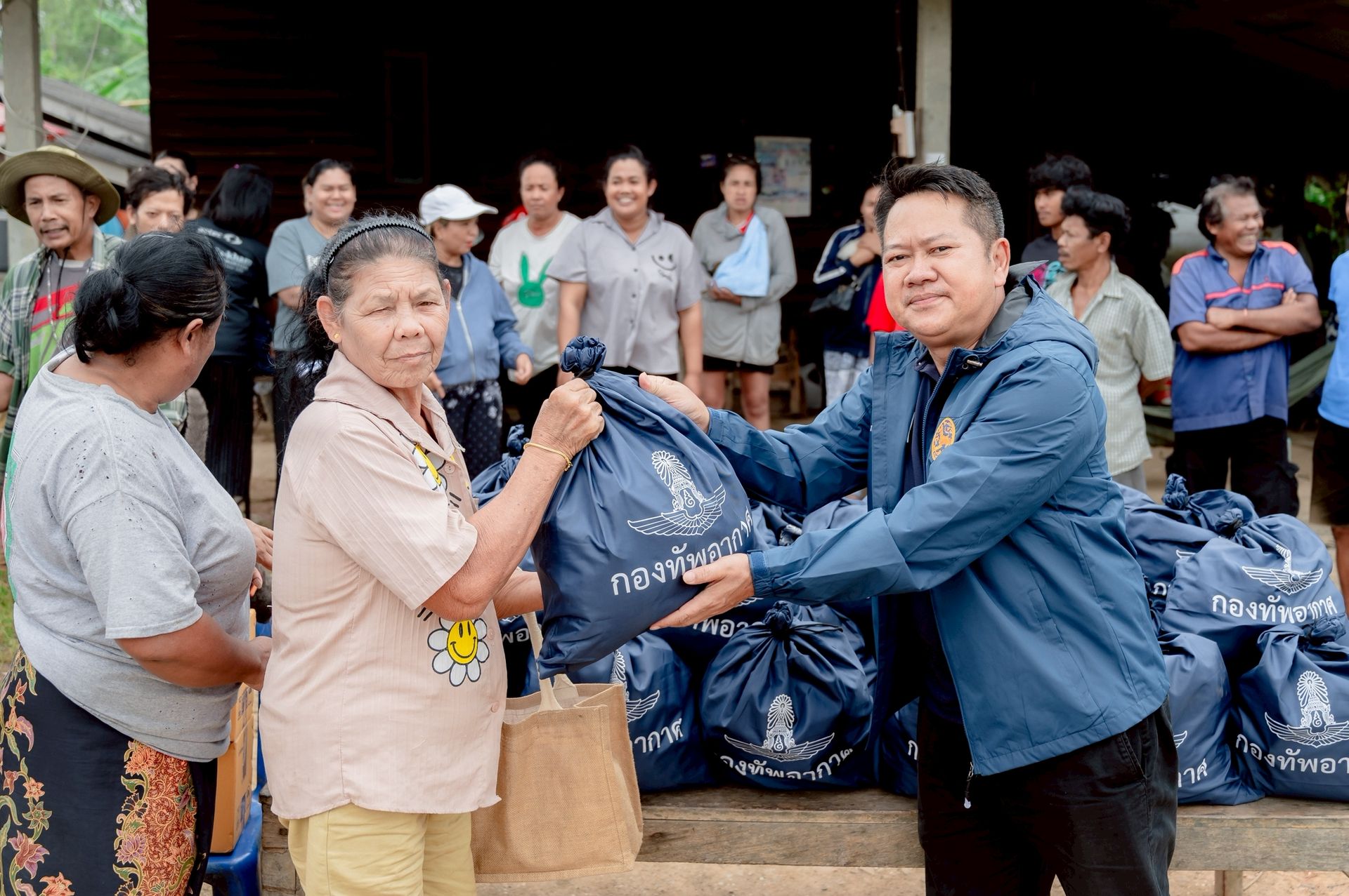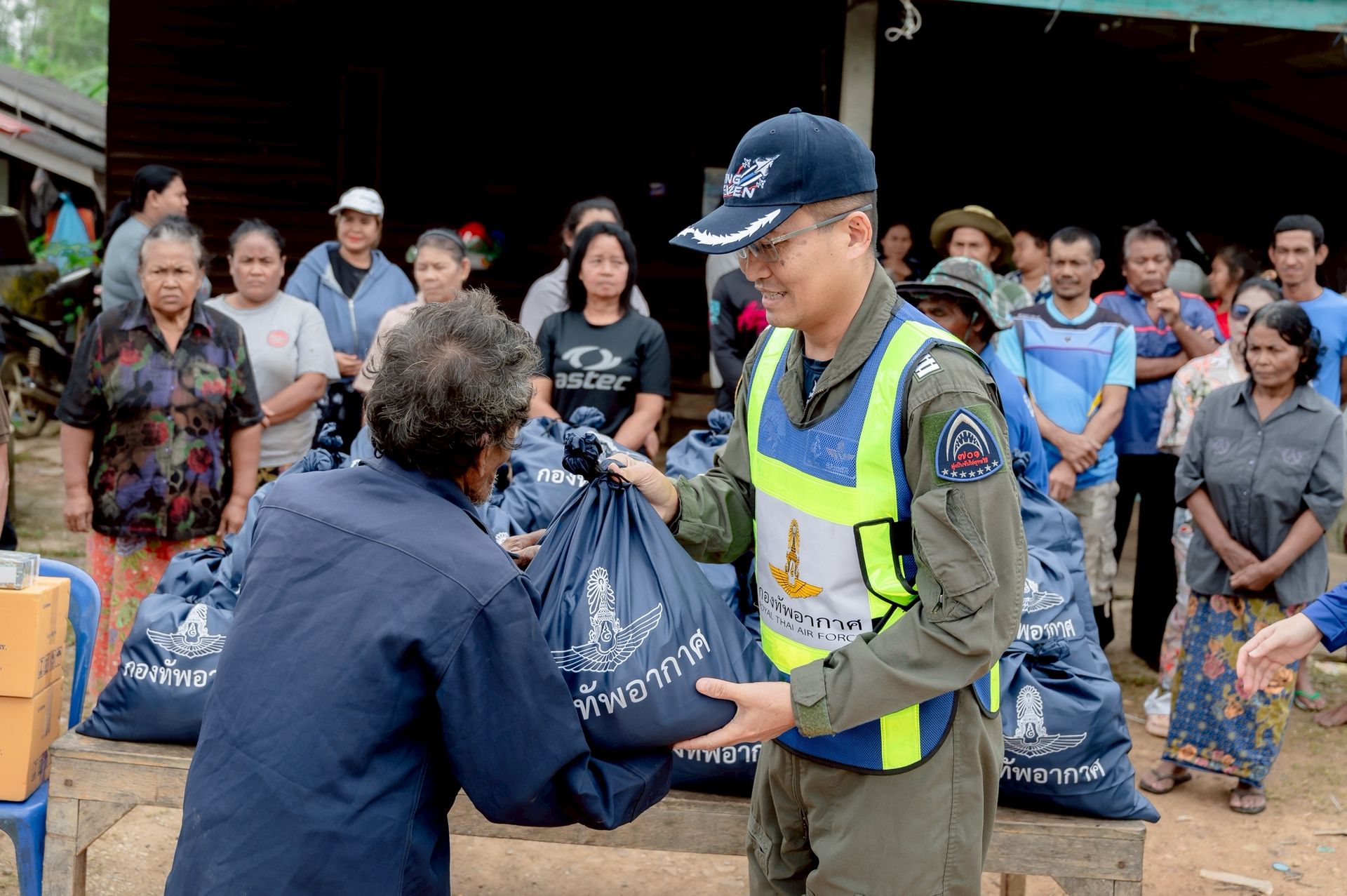 ศูนย์บรรเทาสาธารณภัยกองบิน ๗ มอบถุงยังชีพ บรรเทาความเดือดร้อนให้พี่น้องประชาชน อำเภอท่าฉาง จังหวัดสุราษฎร์ธานี