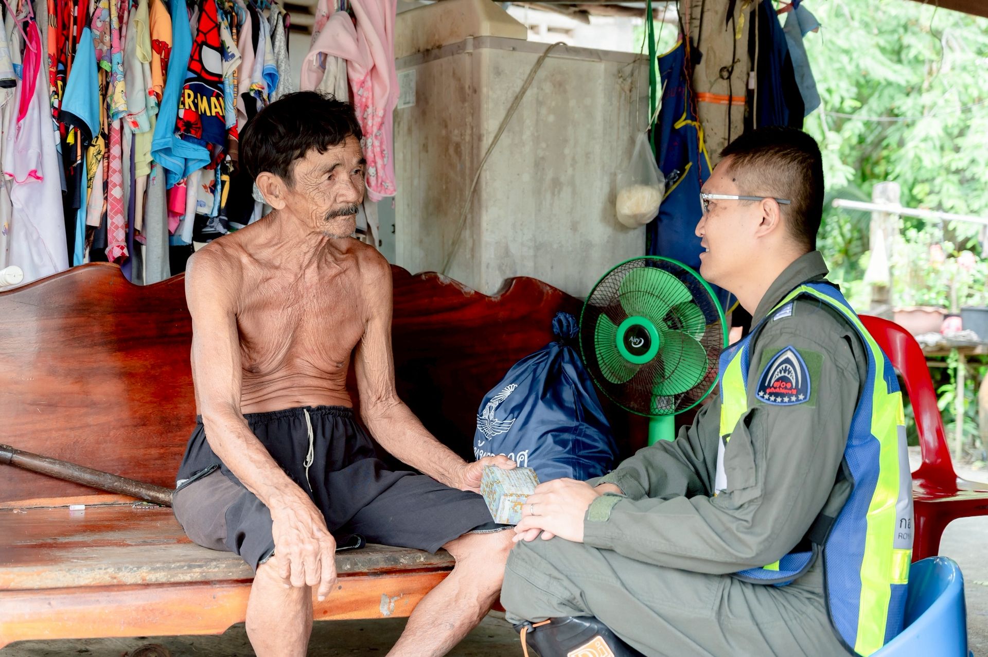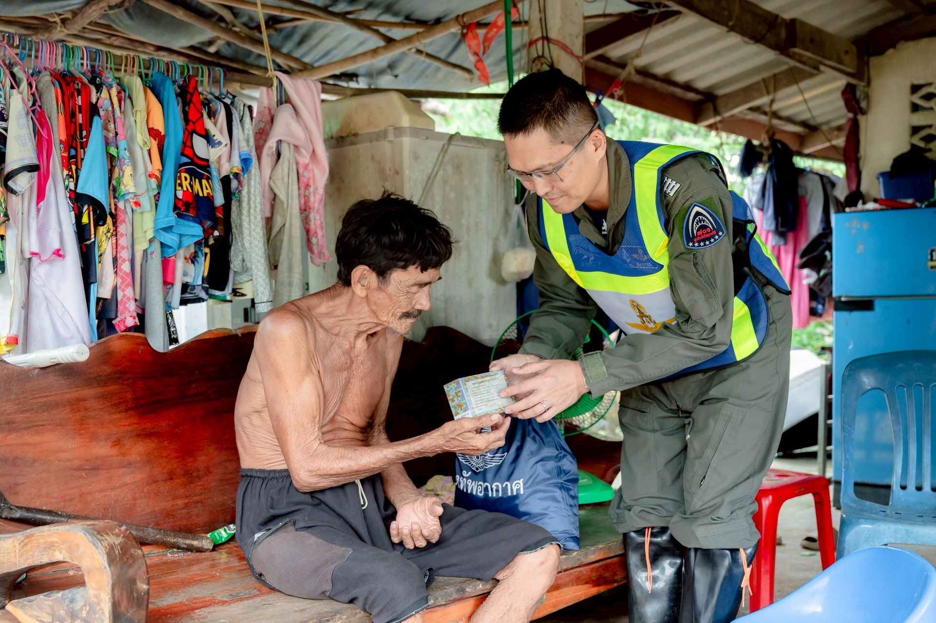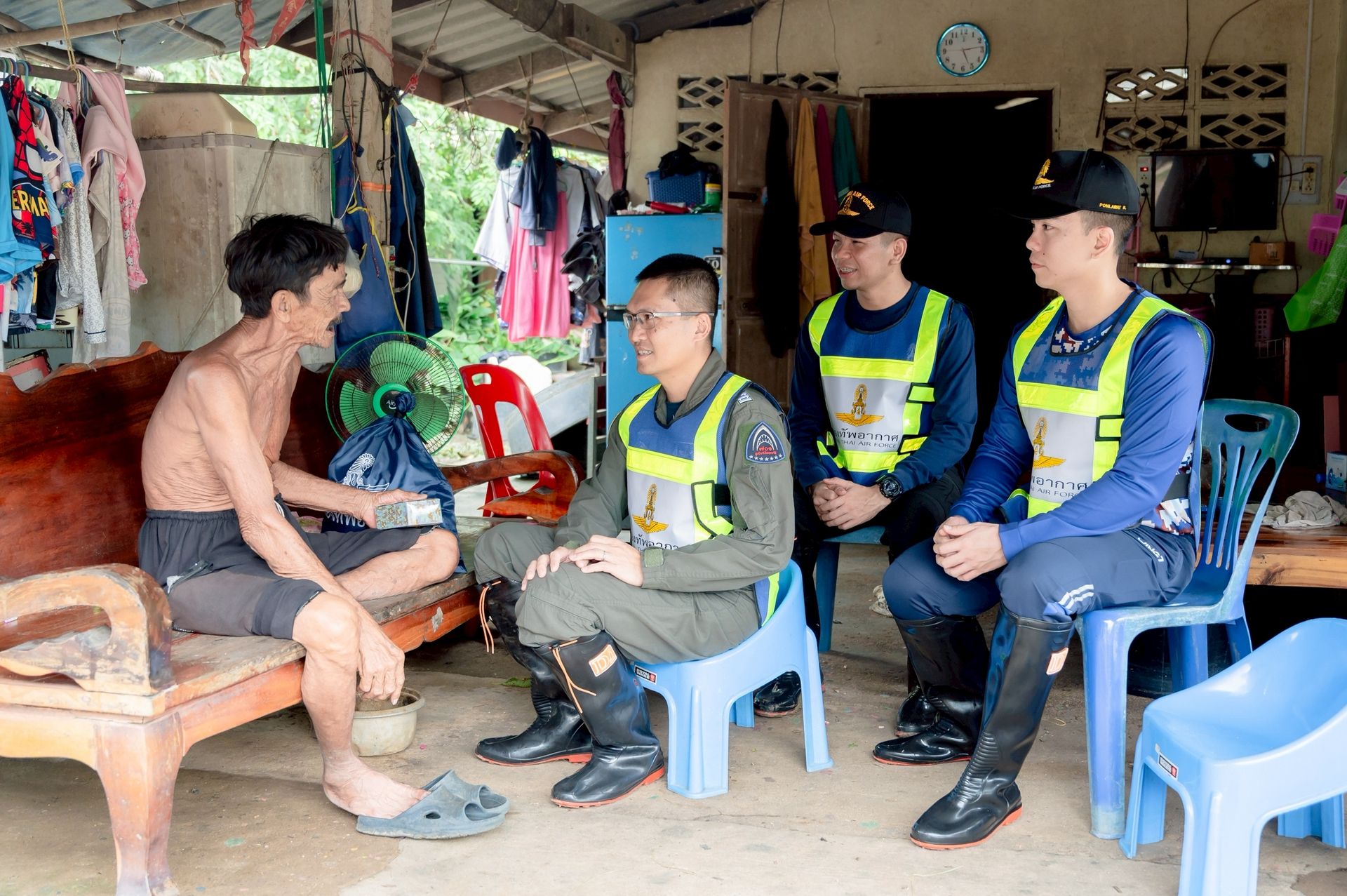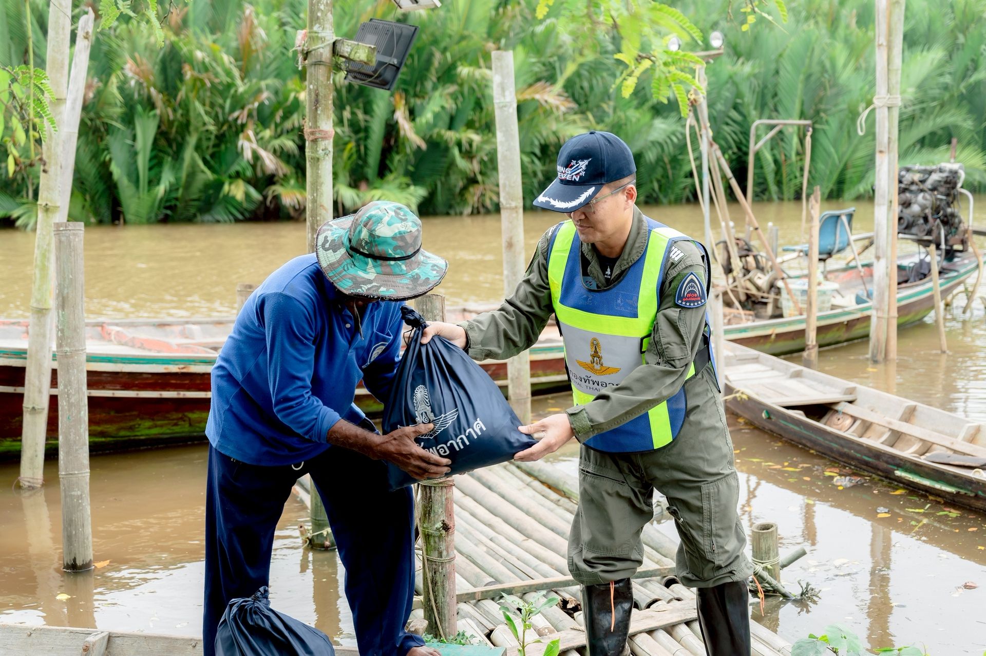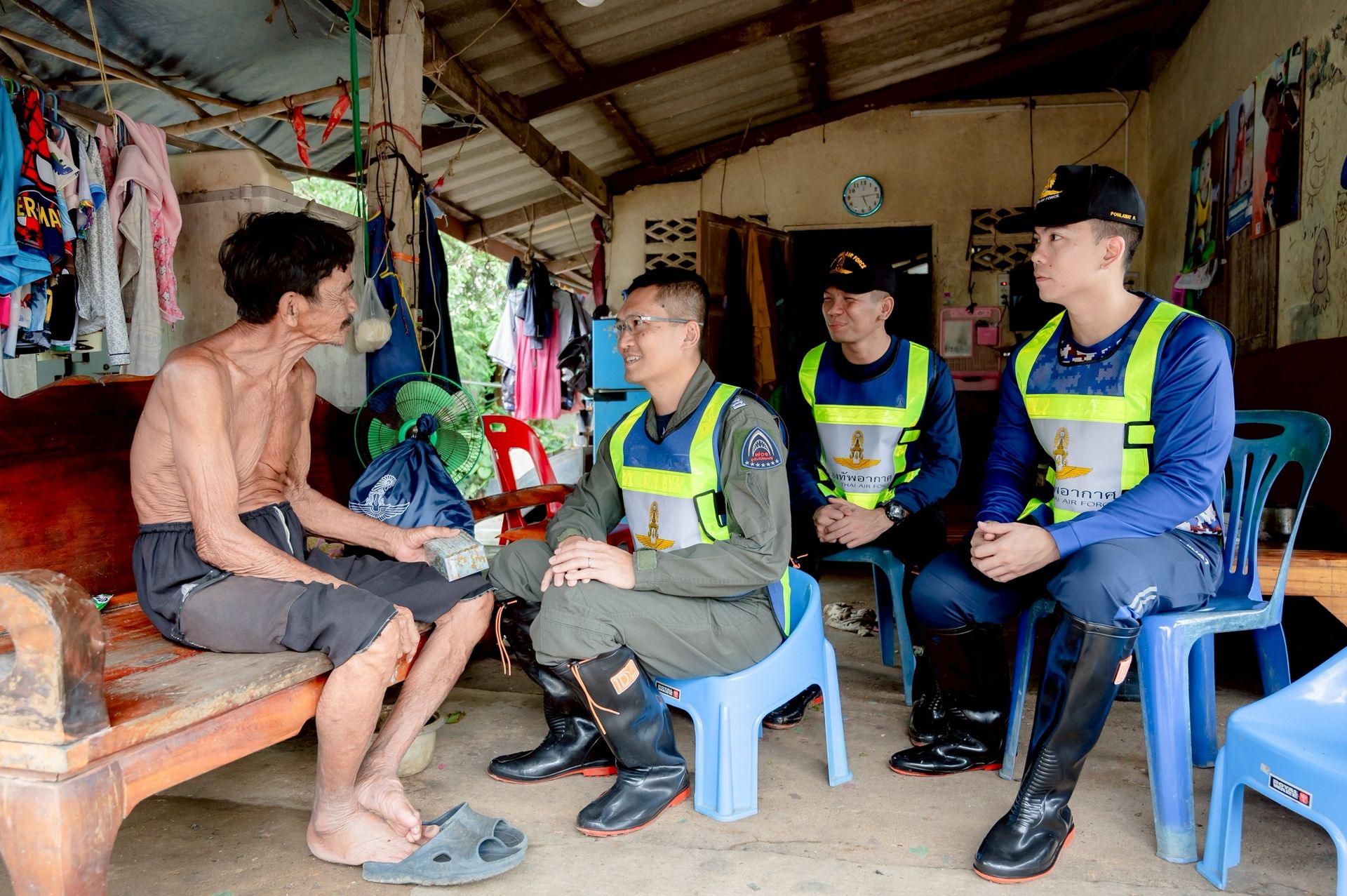 นาวาอากาศเอก ศุภวัจน์ จิตรมนตรี ผู้บังคับการกองบิน ๗ ในฐานะผู้อำนวยการศูนย์บรรเทาสาธารณภัยกองบิน ๗ มอบหมายให้ นาวาอากาศเอก เฉลิมชัย ชำนาญยนต์ รองผู้บังคับการกองบิน ๗ / รองผู้อำนวยการศูนย์บรรเทาสาธารณภัยกองบิน ๗ พร้อมด้วย เจ้าหน้าที่ศูนย์บรรเทาสาธารณภัย กองบิน ๗ ลงพื้นที่มอบถุงยังชีพ น้ำดื่ม และชุดยาสามัญประจำบ้านแก่ผู้ประสบภัยจากน้ำท่วมขัง เพื่อช่วยบรรเทาความเดือดร้อนในเบื้องต้น ตลอดจนพบปะพูดคุยให้กำลังใจแก่ประชาชน ณ ตำบลท่าเคย อำเภอท่าฉาง จังหวัดสุราษฎร์ธานี เมื่อวันที่ ๒๗ พฤศจิกายน พ.ศ.๒๕๖๘