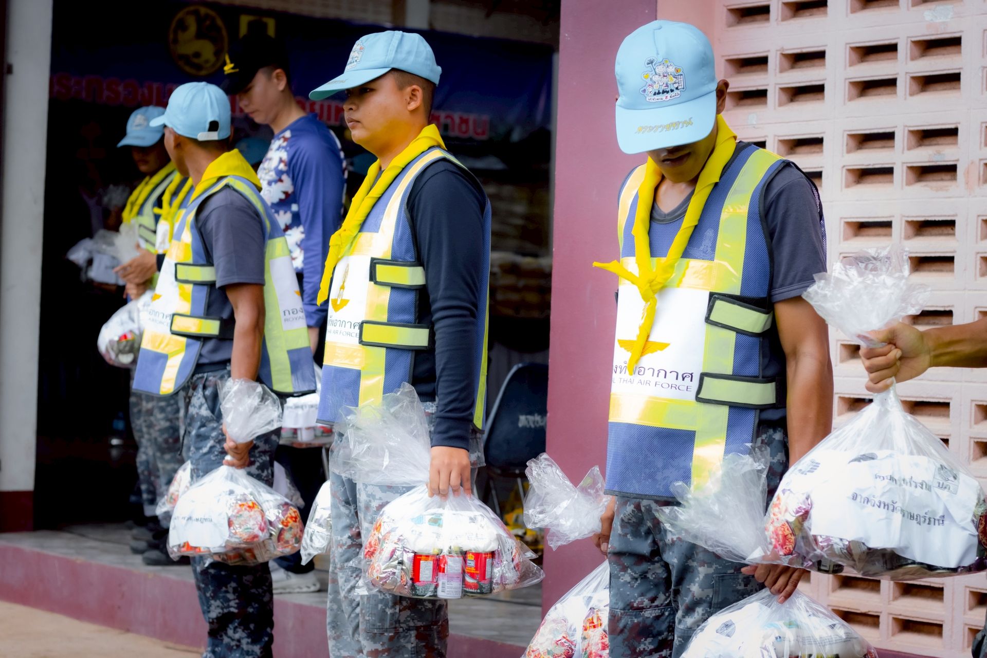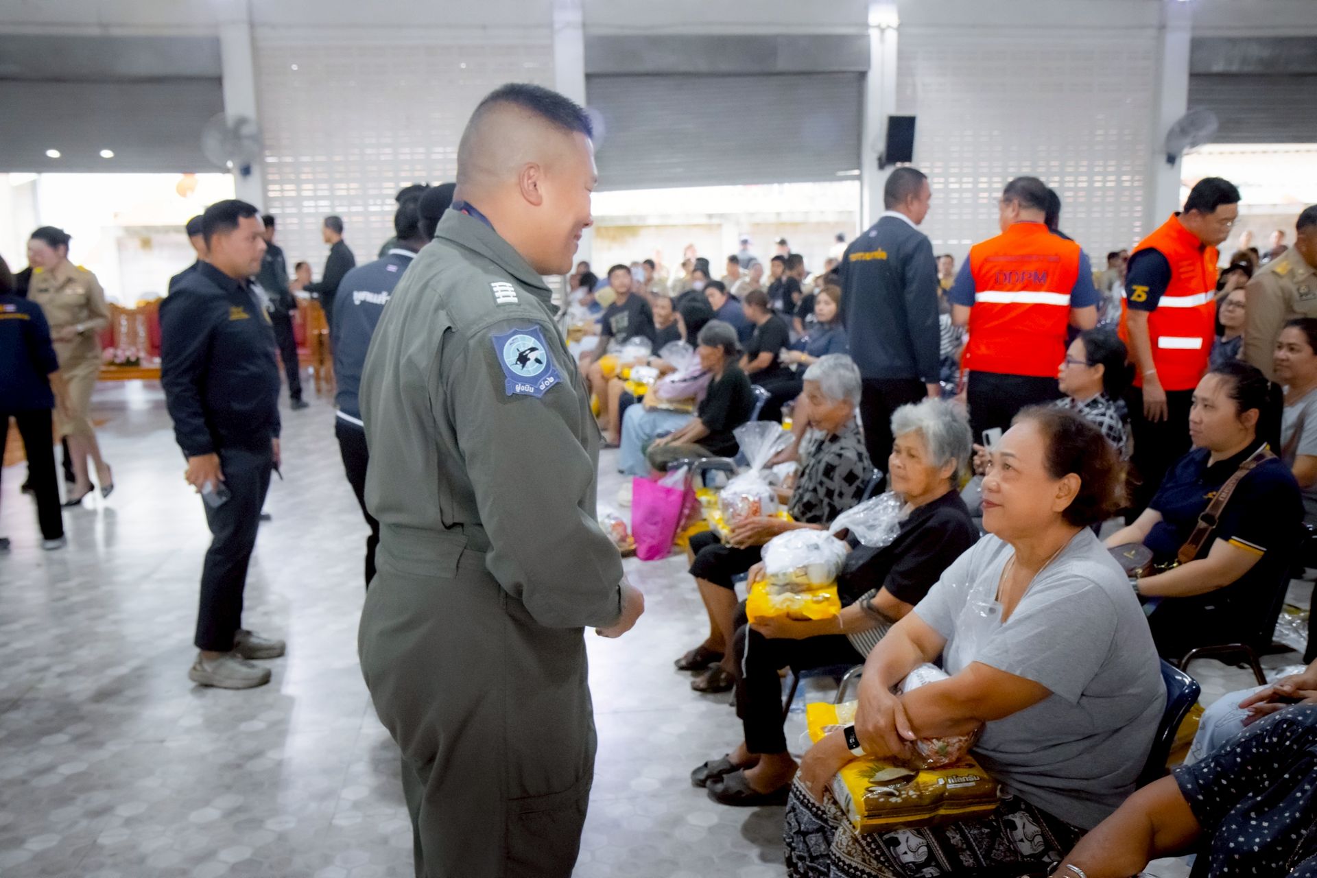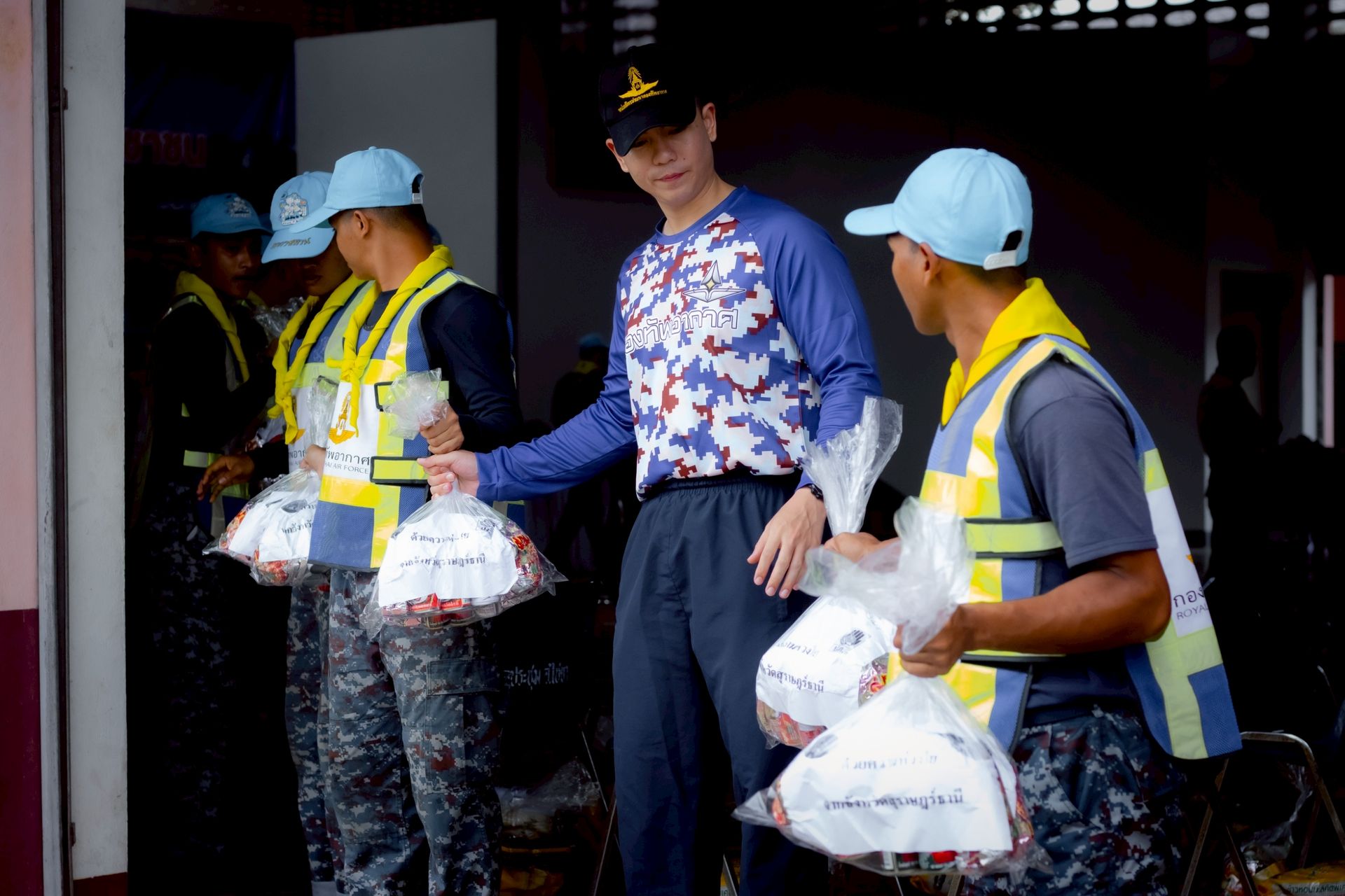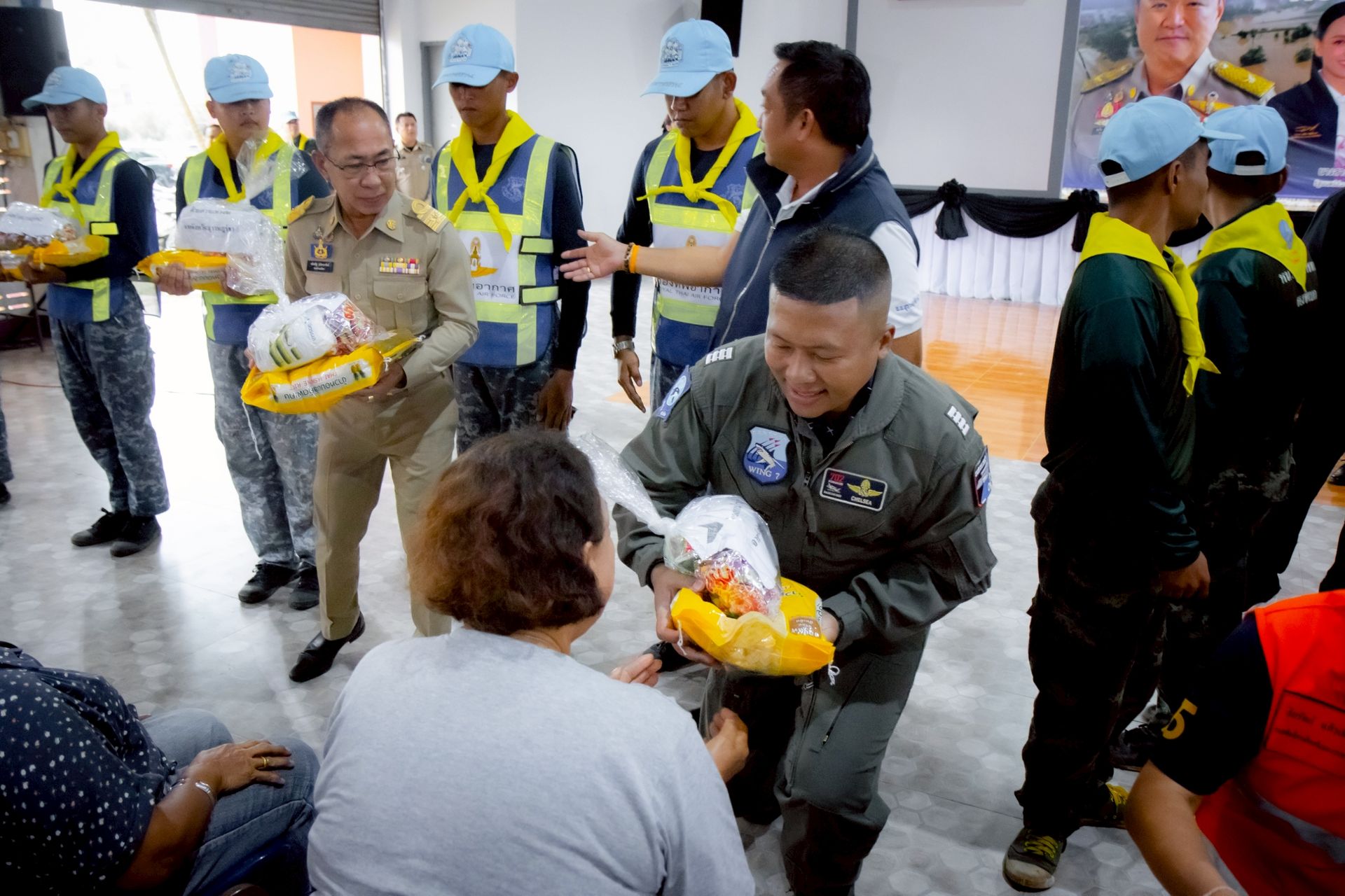 นาวาอากาศ เอกศุภวัจน์ จิตรมนตรี ผู้บังคับการกองบิน ๗ ในฐานะผู้อำนวยการศูนย์บรรเทาสาธารณภัยกองบิน ๗ มอบหมายให้ นาวาอากาศเอก ชัยพร จรรยา เสนาธิการกองบิน ๗ / รองผู้อำนวยการศูนย์บรรเทาสาธารณภัยกองบิน ๗ พร้อมด้วยจิตอาสา 904 จิตอาสาพระราชทานและเจ้าหน้าที่ศูนย์บรรเทาสาธารณภัยกองบิน ๗ ร่วมติดตามสถานการณ์พื้นที่ประสบอุทกภัยและมอบถุงยังชีพให้แก่ผู้ประสบภัย ตลอดจนนำกำลังพลเข้าช่วยเหลือในการจัดเตรียมอาคารสถานที่ และขนย้ายถุงยังชีพให้เป็นระเบียบเรียบร้อย โดยร่วมกับหน่วยงานในพื้นที่เพื่อเป็นการเตรียมความพร้อมในพิธีมอบถุงยังชีพต่อไป ณ ศาลาประชาคมอำเภอไชยา ตำบลตลาดไชยา อำเภอไชยา จังหวัดสุราษฎร์ธานี
